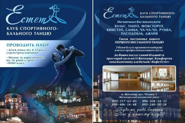 Танцювальний клуб “Естет” у Житомирі: Ваша студія бальних танців